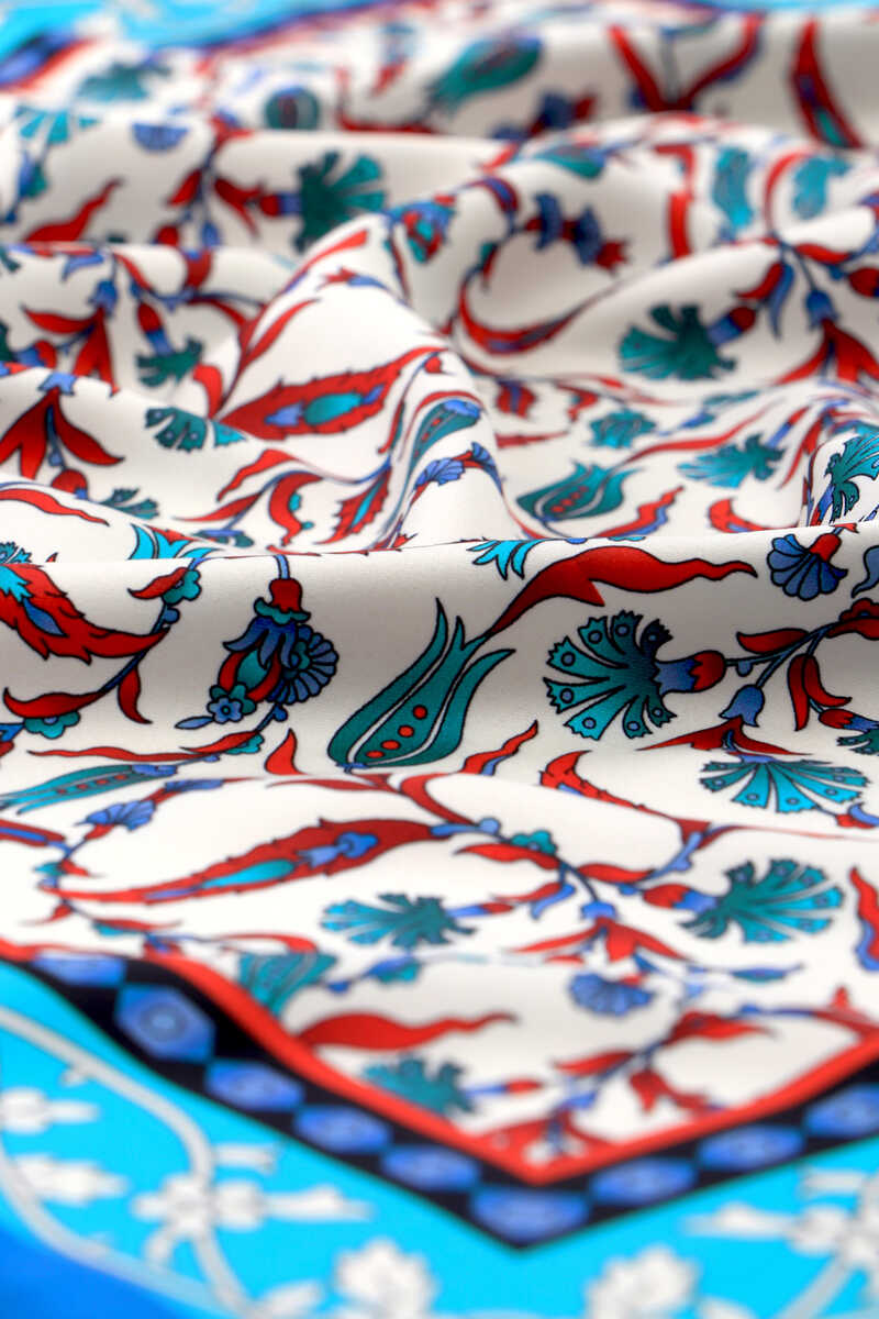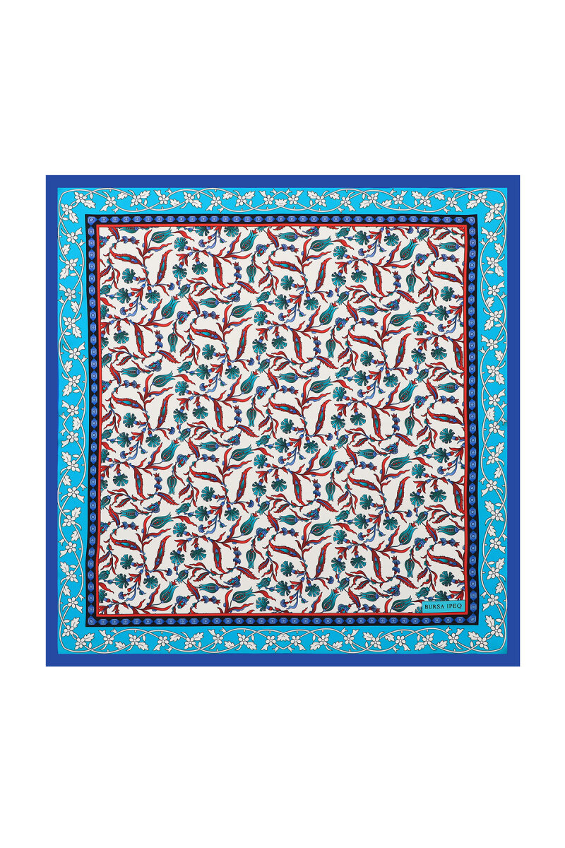 Turkuaz Lale Karanfil Desen İpeksi Mendil