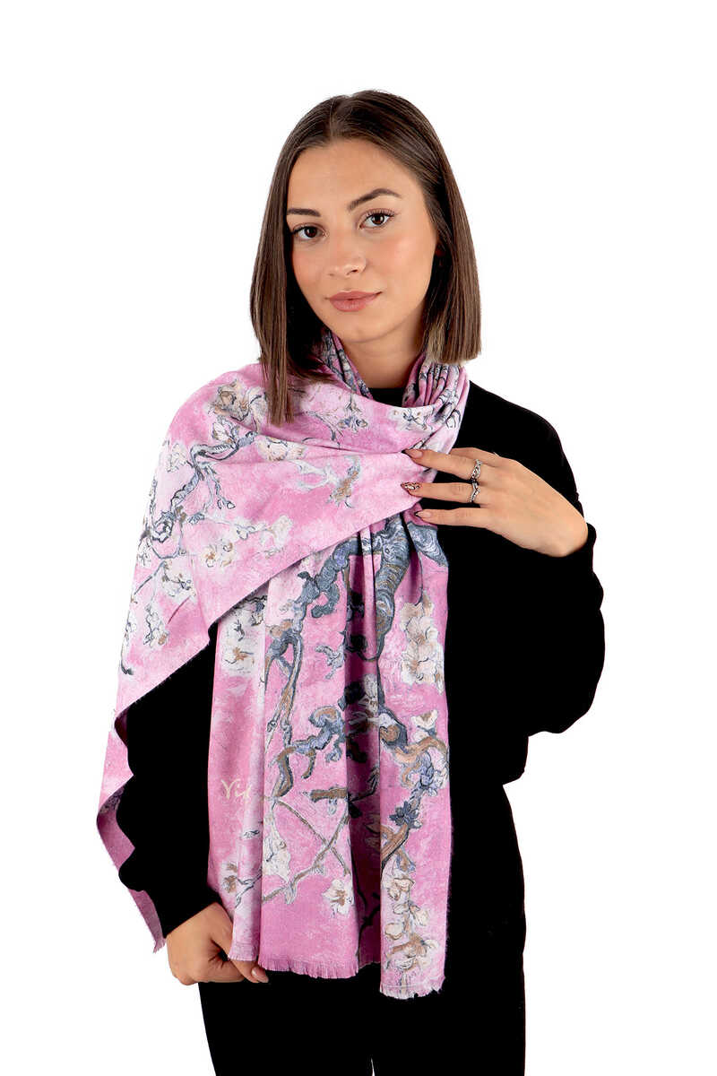 While our Pink Almond Blossom Pattern Winter Shawl model will warm you up on cold winter days, it will also complement your sports and classic combinations. Our product offers ease of use with its acrylic fabric and dimensions of 70x190 cm.