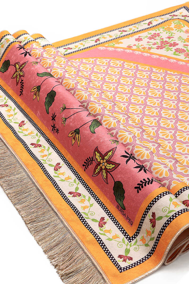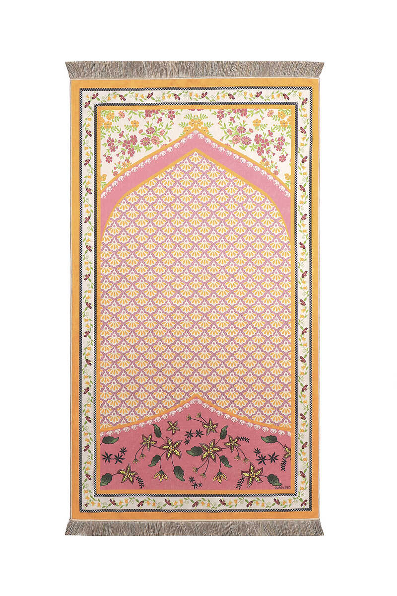 While our prayer rug models with Turkish motifs and tile patterns offer a decorative appearance with their silky texture and eye-catching colors, their velvet texture is specially designed for your comfortable use with 65x115cm dimensions.