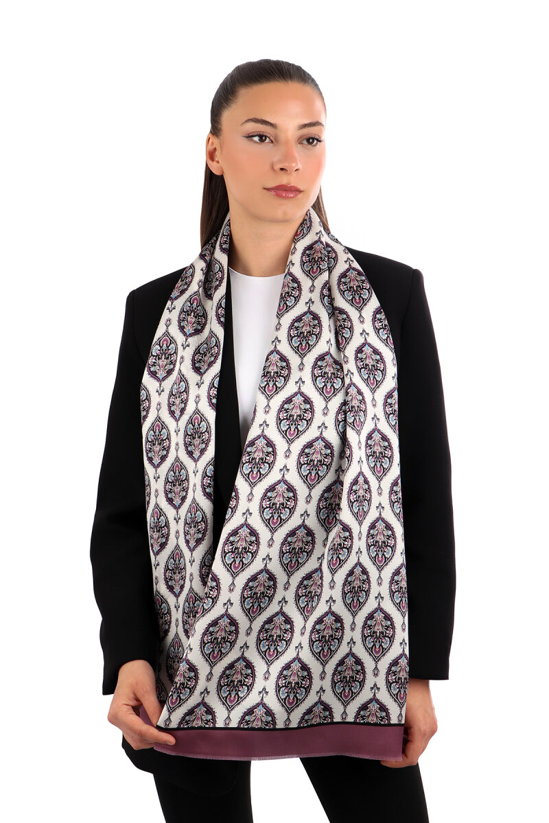 A special model that will add elegance to your style and complement your style from the most serious business meeting to the most elegant art gallery. Our Damson colored Hatai Pattern Narrow Silk Foulard model with eye-catching patterns offers ease of use with its 100% silk content and 45 x 160 cm dimensions.