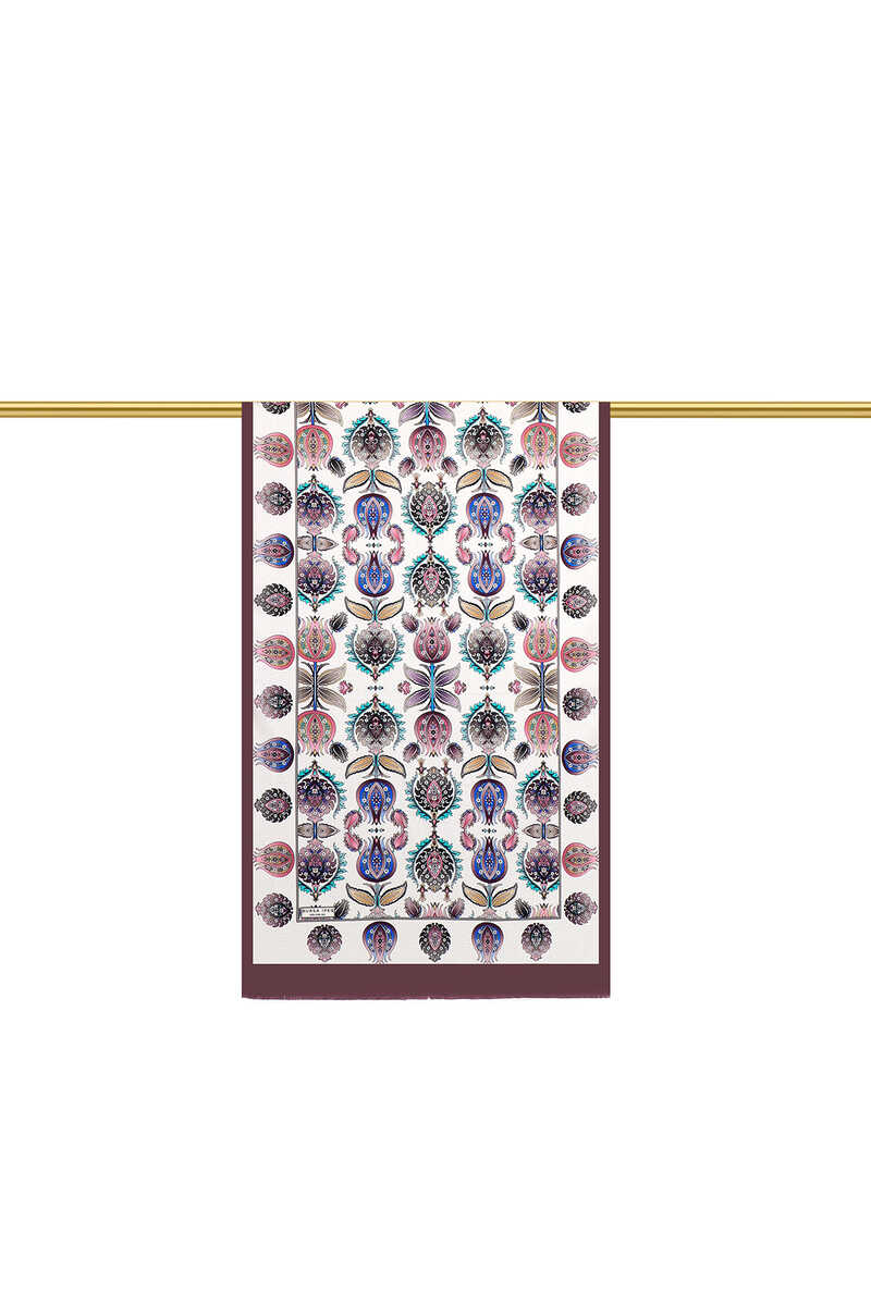 special model that will add elegance to your style and complement your style from the most serious business meeting to the most elegant art gallery. Our Plum colored Iznik Pattern Silk Foulard model, with eye-catching patterns, offers ease of use with its 100% silk content and 55x160cm dimensions.