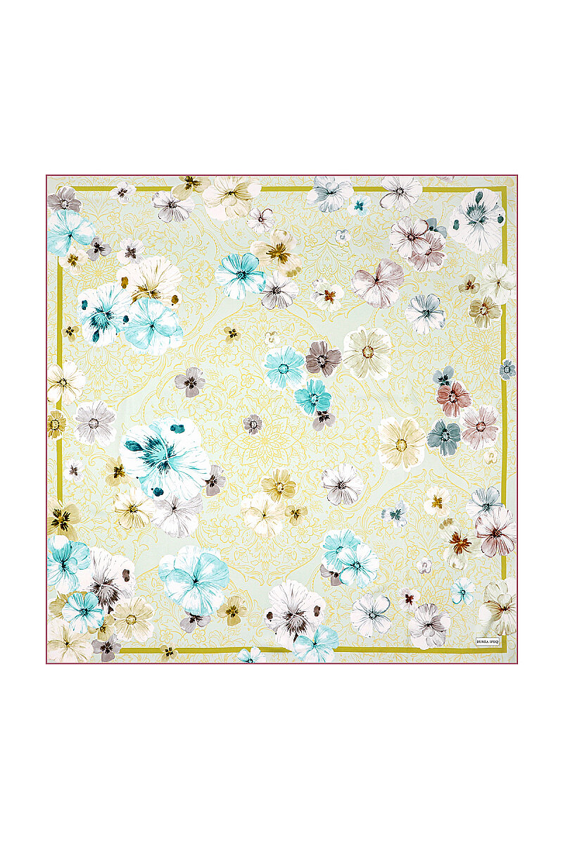 Acid Green Poppy Pattern Double-Sided Twill Silk Scarf