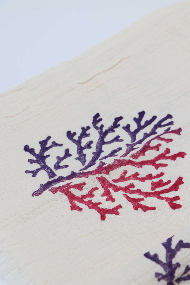 Our purple plum colored coral printed loincloth model, which is patterned with traditional lithography and presents you with a pleasing coral design and envelops you with its soft texture, is 100x190 cm in size, absorbs water quickly, dries quickly, occupies less space, and is easy to carry with its 100% muslin content. It is suitable for use in the bath, beach, pool and home decoration.