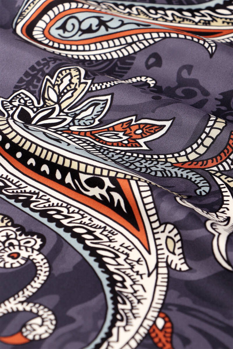 A symbol of timeless chic and elegance, the Amethyst paisley twill silk scarf combines classic motifs with a modern touch. Vibrant color transitions and elegant paisley patterns make this scarf an essential piece for both everyday outfits and special occasions. Made from 100% twill silk and measuring 90 x 90 cm, it offers ease of use.