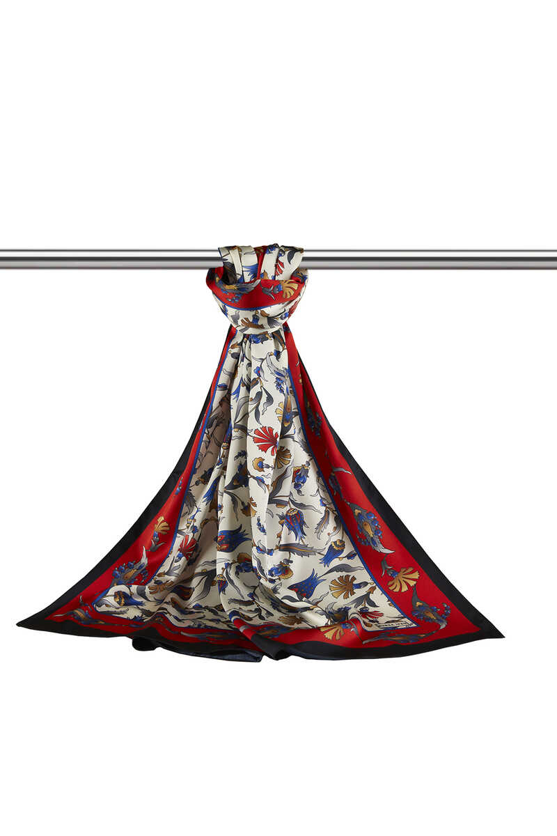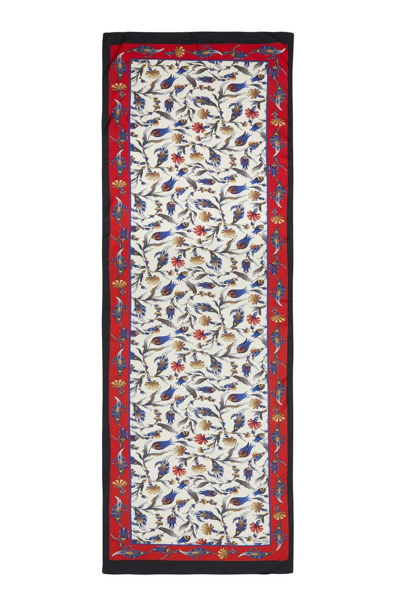 Red Black Carnation Tulip patterns combined with silky fabric texture and bright and vibrant colors is a fun and classic choice at the same time... Add energy to life with the silky texture of flowers! Our product: 100% silky rayon fabric offers ease of use with its 55x155cm dimensions.