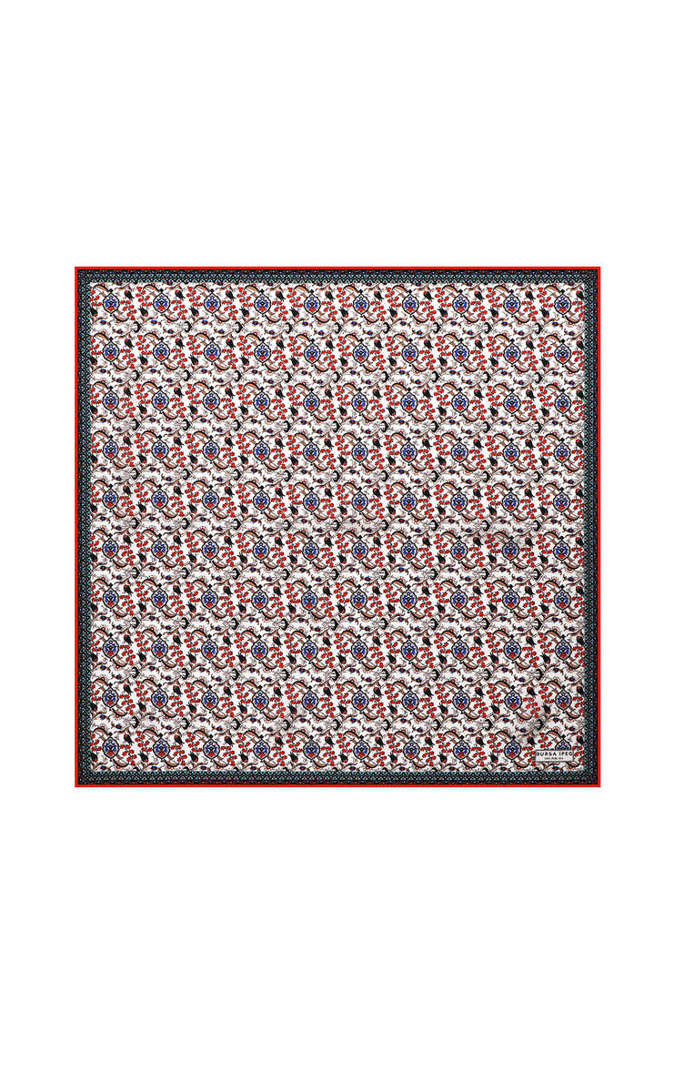 The most special patterns of our traditional heritage meet with silk accompanied by modern interpretations. The indispensable passion of women, our Turkish Patterned Red Black colored unique Ivy Tulip patterned silk Pocket Square model; It offers you both comfort and traditional elegance with a thick, soft and spacious touch. It offers comfort of use with its 100% silk content and 55x55cm dimensions.