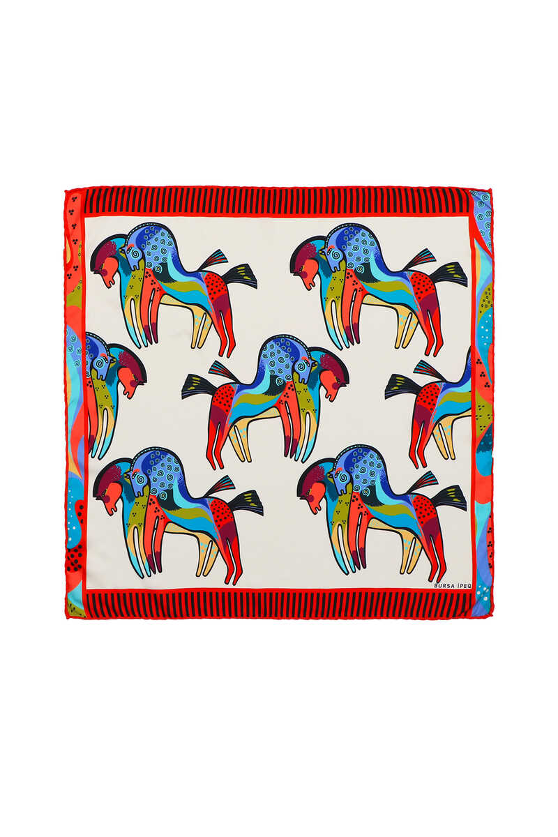 Red Turquoise Candlestick Pattern Wide Silky Foulard