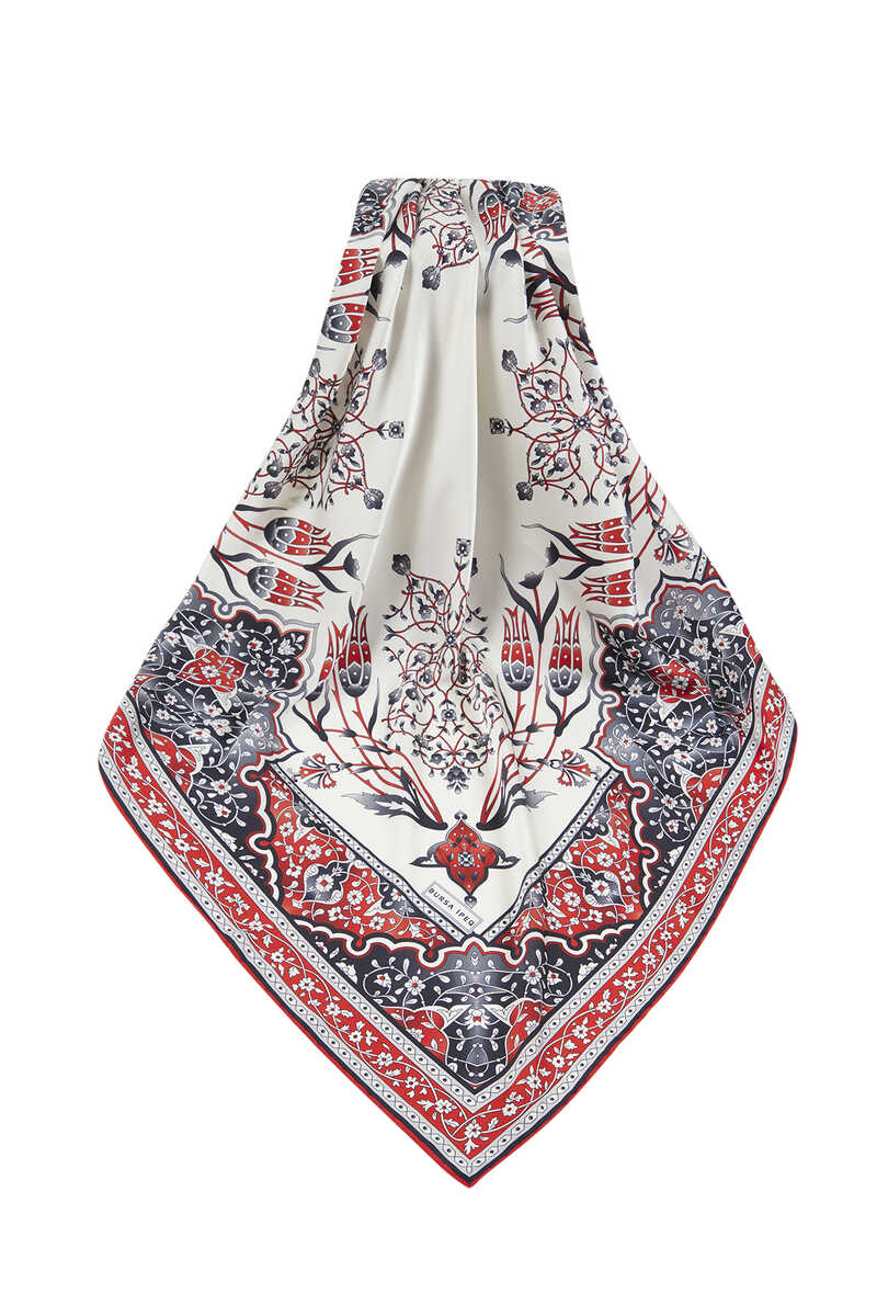 Red Black Candlestick A fun and classic choice where tulip patterns come together with silky fabric texture and bright and vibrant colors… Add energy to life with the silky texture of flowers! Our product: 100% silky rayon fabric offers ease of use with its dimensions of 90x90 cm.