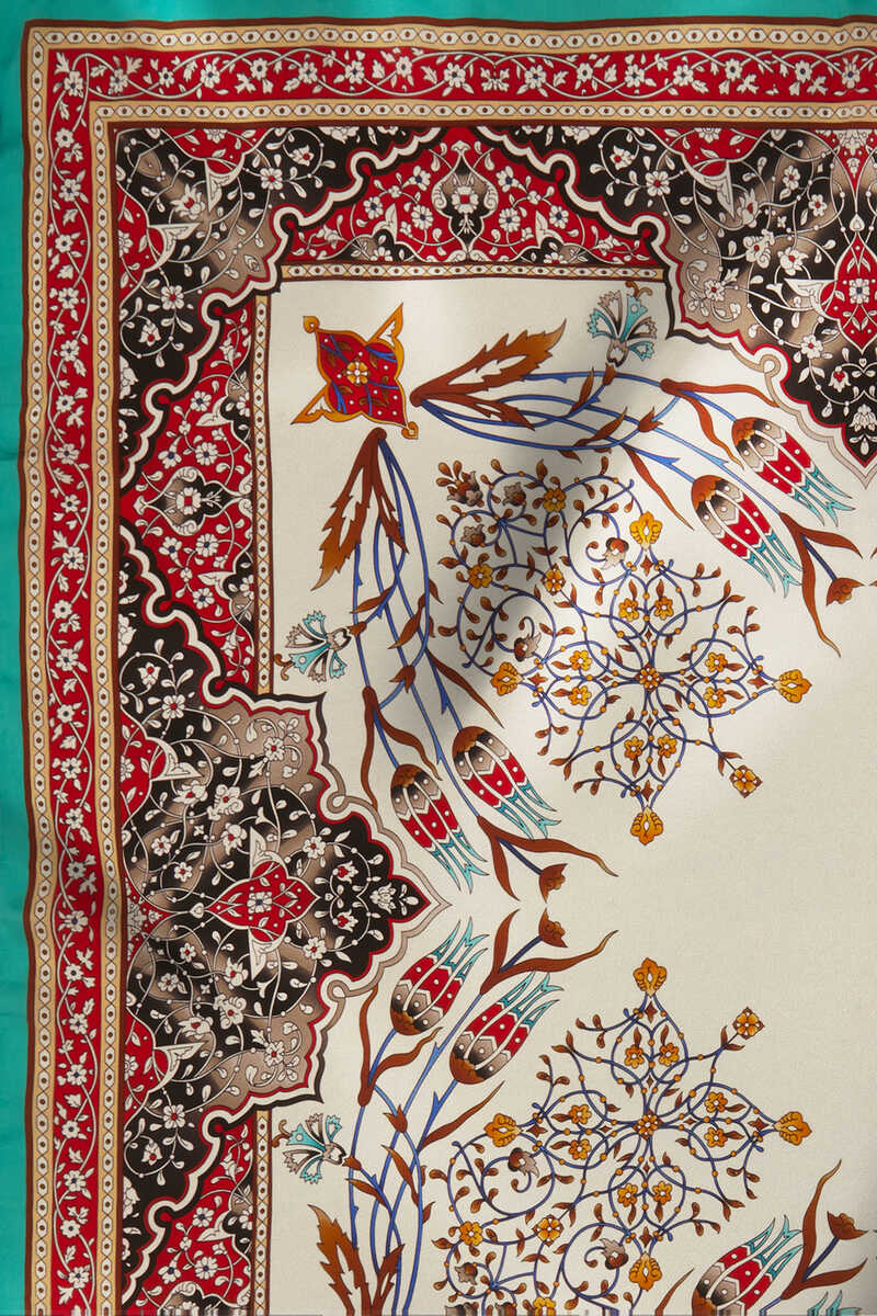 A fun and at the same time classic choice where the Red Petroleum-colored Candlestick Tulip pattern comes together with the silk fabric texture and bright and vibrant colors… Add energy to life with the flowers as they are wrapped in silk! Our product: 100% Silk fabric offers ease of use with its dimensions of 90x90cm.