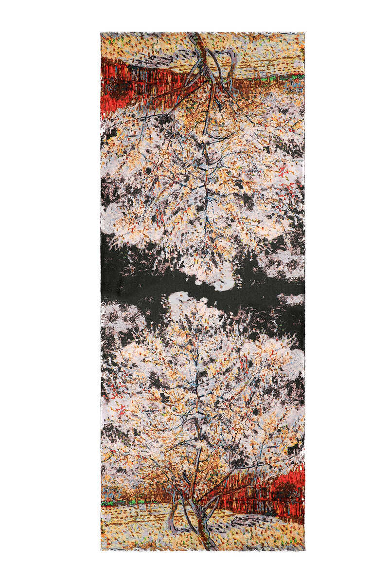 Red Peach Tree Pattern Winter Shawl