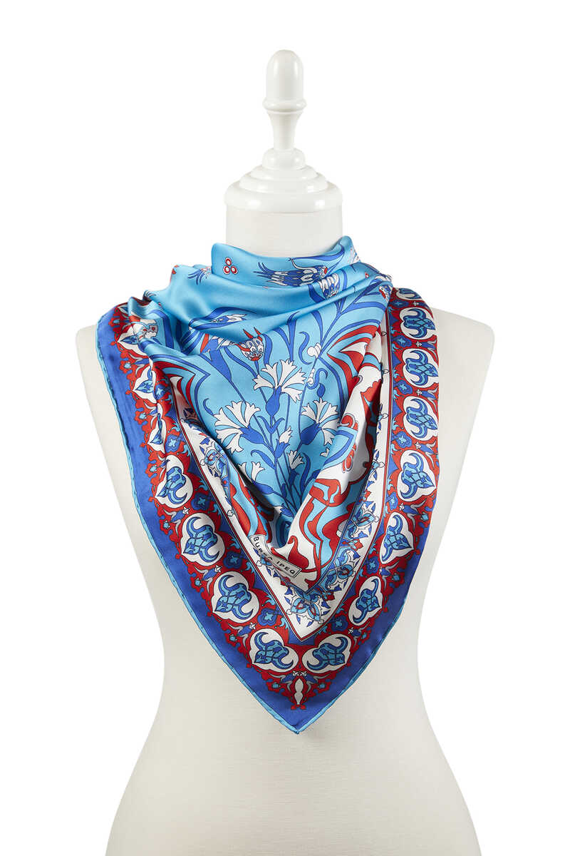 Red Saks Çintemani A fun and classic choice where carnation patterns come together with silky fabric texture and bright and vibrant colors… Add energy to life with the silky texture of flowers! Our product: 100% silky rayon fabric offers ease of use with its dimensions of 90x90 cm.