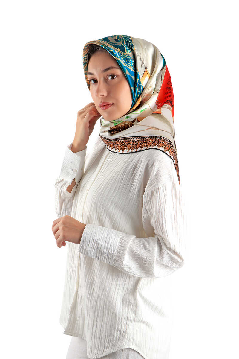 You will feel the atmosphere of integrity in different beauty with Osman Hamdi's unique work, the Turtle Trainer Silk Square Scarf, which is reflected in the unique elegance of silk. Our product; It offers ease of use with its 100% Silk content and 90x90cm dimensions.
