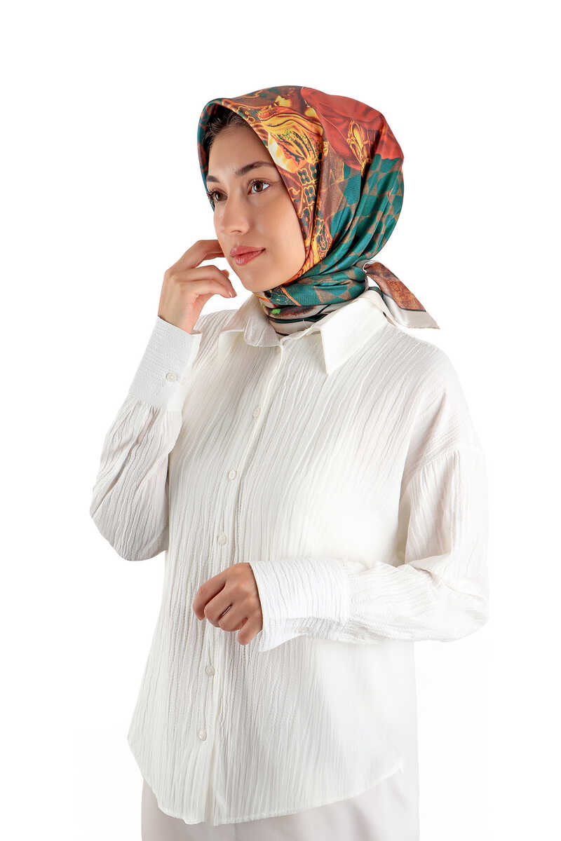 You will feel the atmosphere of integrity in different beauty with Osman Hamdi's unique work, the Turtle Trainer Twill Silk Square Scarf, which is reflected in the unique elegance of silk. Our product; It offers ease of use with its 100% Silk content and 90x90cm dimensions.