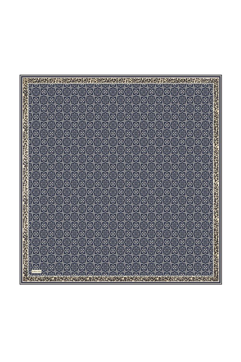 Lacivert Rüya Desen Twill İpek Eşarp