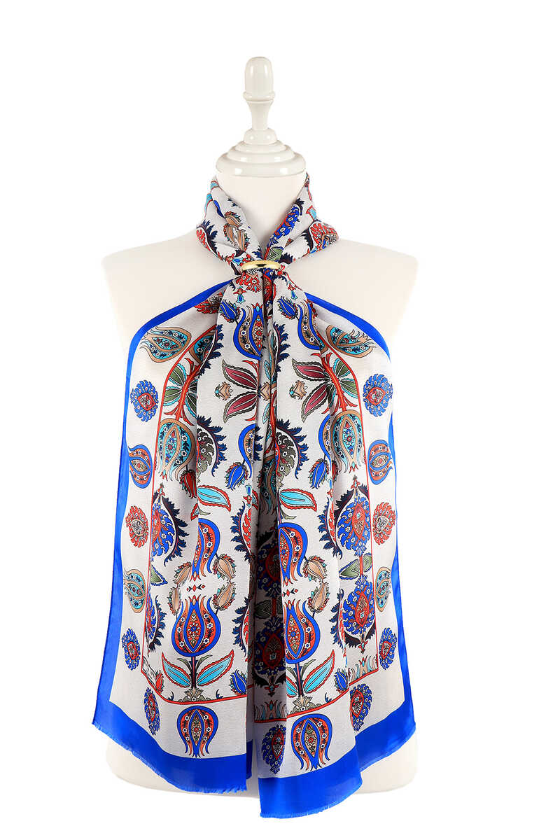 special model that will add elegance to your style and complement your style from the most serious business meeting to the most elegant art gallery. Our Saks colored Iznik Pattern Silk Foulard model with eye-catching patterns offers ease of use with its 100% silk content and 55x160cm dimensions.