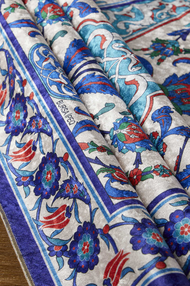 With its silky texture and eye-catching colors, our Turkish motif and tile patterned prayer rug models offer a decorative look, while the velvet texture is specially designed for your comfortable use with 65x115cm dimensions.