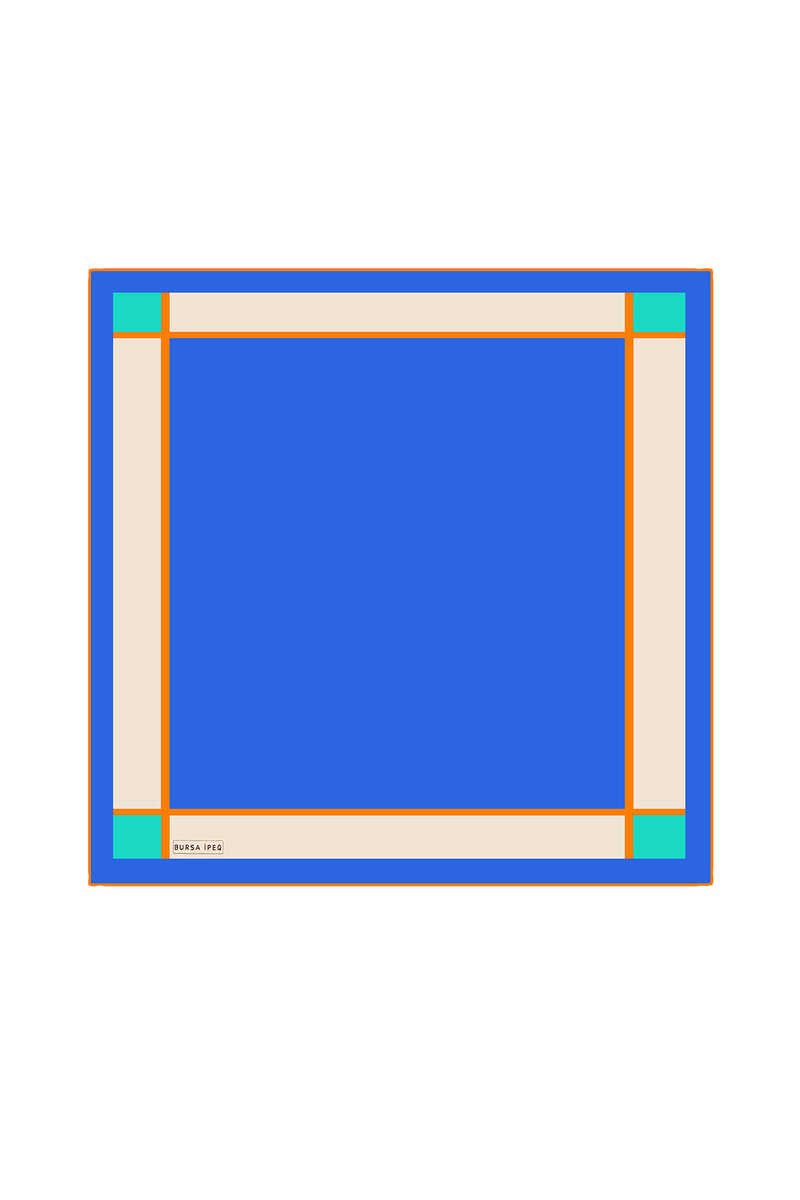 Turquoise Turkish Motif Candlestick Tulip Pattern Silky Square Scarf