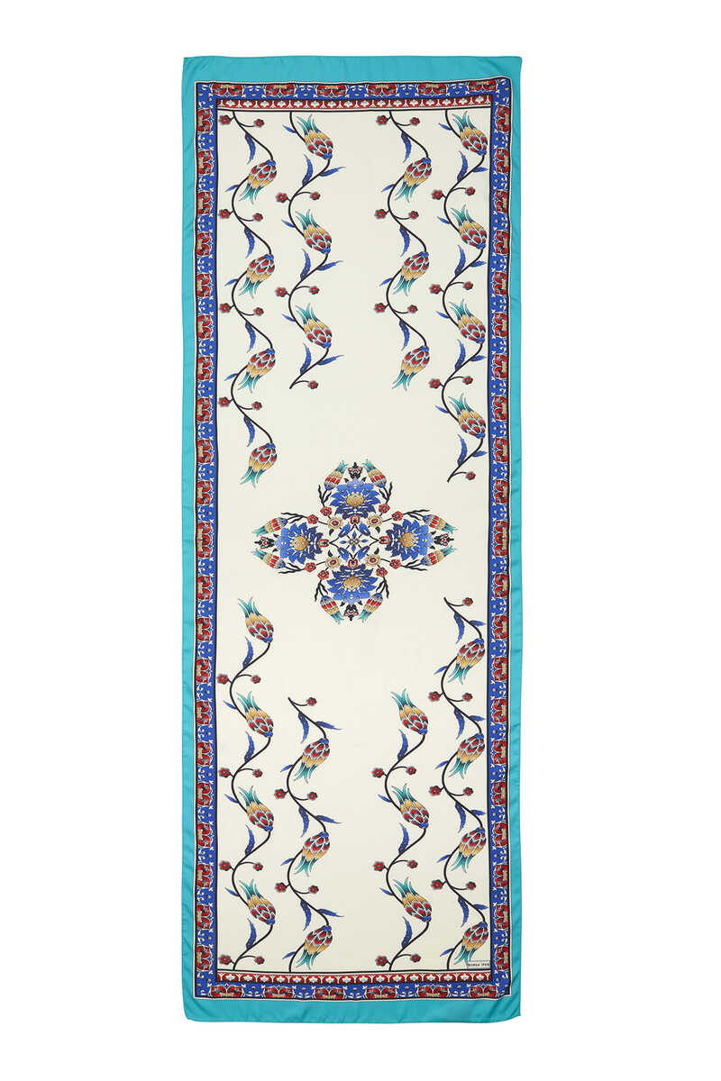 Saks Yeşil Sıra Lale desenlerinin ipeksi kumaş dokusu ile parlak ve canlı renklerle bir araya geldiği eğlenceli ve aynı zamanda klasik bir seçim… Çiçeklerin ipeksi dokuya büründüğü halleri ile hayata enerji katın! Ürünümüz: %100 ipeksi rayon kumaşı, 55x160cm boyutlarıyla kullanım kolaylığı sunuyor.