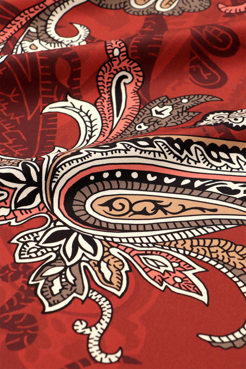 Zamansız şıklığın ve zarafetin sembolü olan Bordo şal desen twill ipek eşarp, klasik motifleri modern bir dokunuşla buluşturuyor. Canlı renk geçişleri ve zarif şal desenleri, eşarbı hem günlük kombinlerde hem de özel davetlerde vazgeçilmez bir parça haline getiriyor. Ürünümüz %100 twill ipek kumaşı, 90 x 90 cm ebatlarıyla kullanım kolaylığı sunmaktadır.