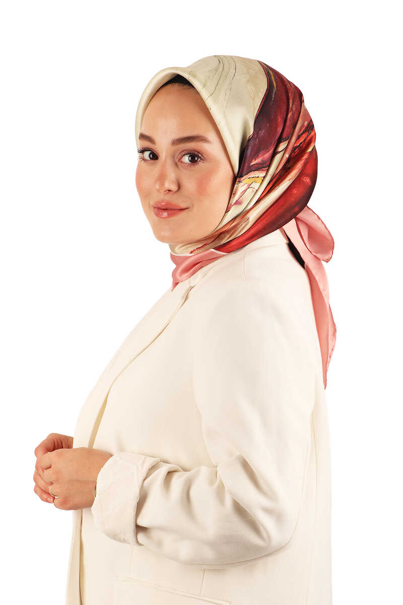 With the Salmon Granite Pattern Sura Silk Scarf, which is reflected in the unique elegance of silk, you will feel the atmosphere of unity in different beauty. Our product; It offers comfort of use with its 100% Silk content and 90x90cm dimensions.
