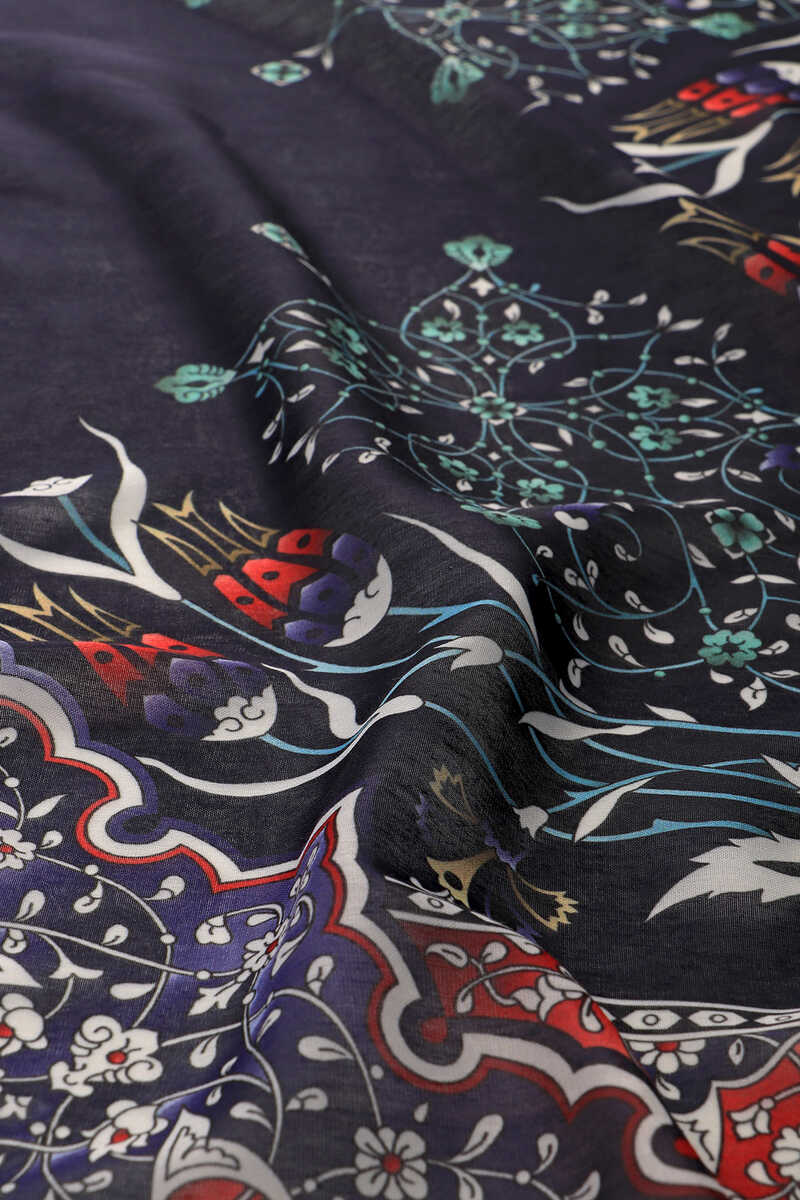 Lacivert Karanfil Lale Desen Soft Eşarp