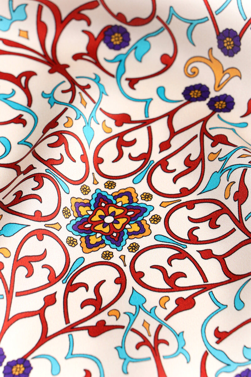 Doğadan ilham alan zarif sarmaşık desenleri, ipeğin ışıltısıyla buluşuyor. Hafif ve akıcı dokusuyla öne çıkan bu özel eşarp, şıklığınızı tamamlamakla kalmaz; her dokunuşta lüksü hissettirir. Ürünümüz %100 sura ipek kumaşı ve 90x90 cm ebatları ile kullanım kolaylığı sunmaktadır.