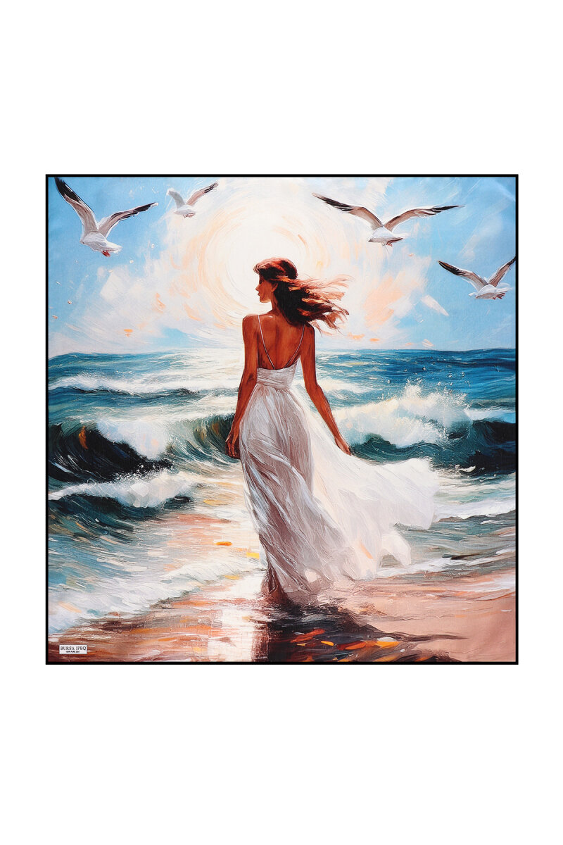 With its blue seagull patterns reflected in the unique elegance of silk, you too will feel the atmosphere of unity in different beauty. Our product, made of 100% silk and measuring 55x55cm, offers ease of use.