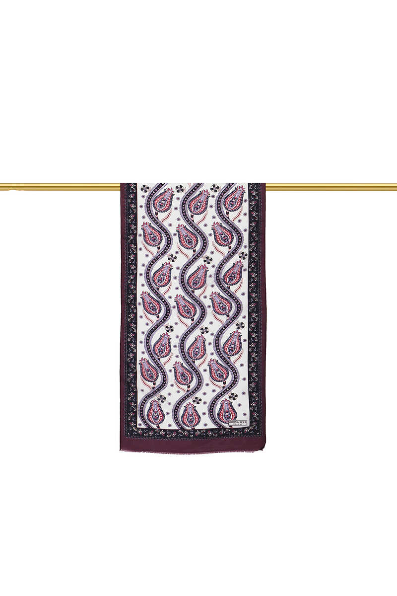 A special model that will complement your style, from the most serious business meeting to the most elegant art gallery, while adding elegance to your elegance. Our Plum-Navy Blue Tulip Voile Silk Foulard model with eye-catching patterns offers ease of use with its 100% silk content and dimensions of 35x150cm.