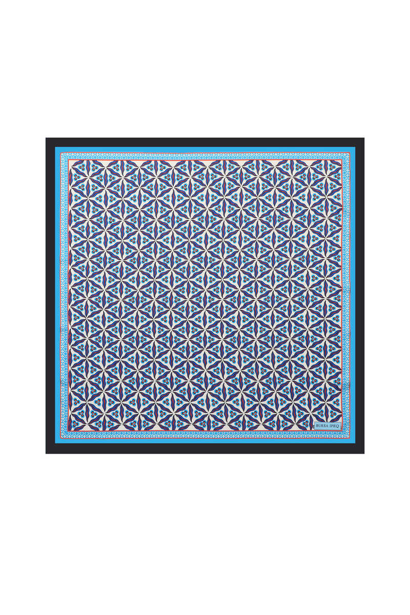 Turkuaz Lale Karanfil Desen İpeksi Mendil
