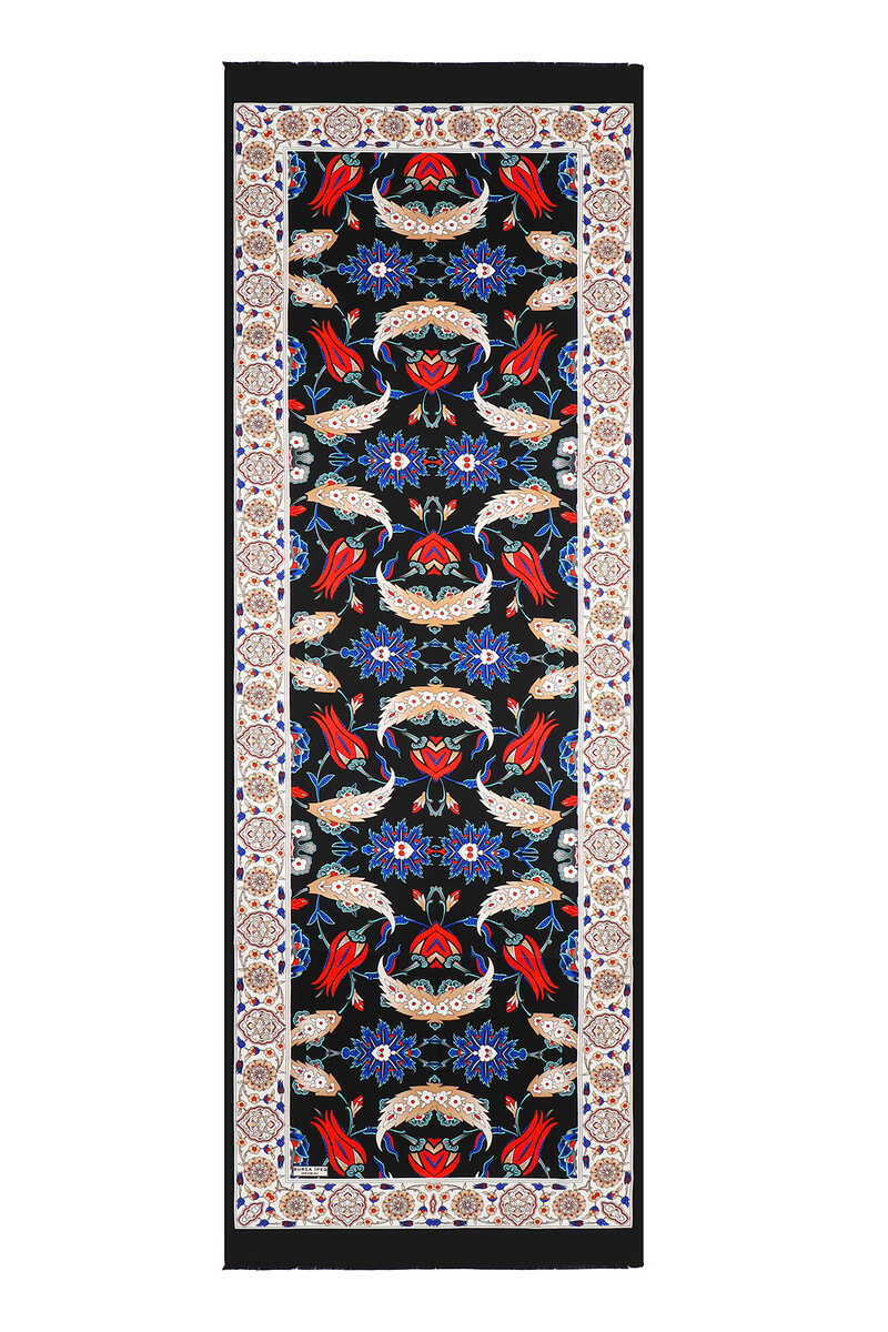 Şıklığınıza şıklık katarken, en ciddi iş toplantısından en zarif sanat galerisine kadar stilinizi tamamlayacak özel bir model. Göz alıcı desenlere sahip Siyah Ekru renkli Efes Desen İpek Fular modelimiz, %100 ipek içeriği, 55x160cm boyutlarıyla kullanım kolaylığı sunuyor.