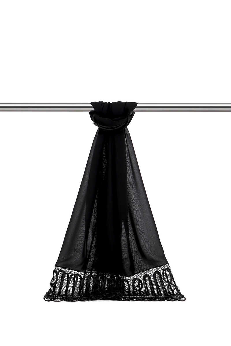 Siyah El İşi Dantel Angles Şal