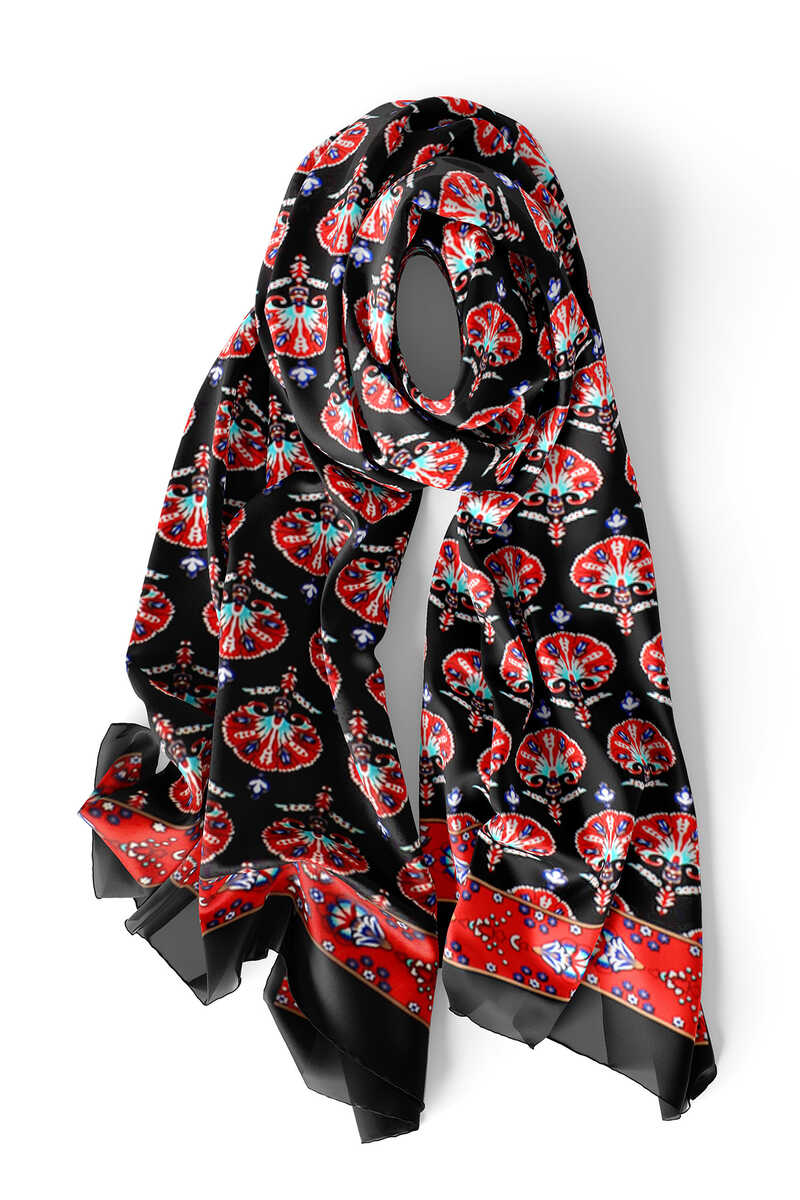 Şıklığınıza şıklık katarken, en ciddi iş toplantısından en zarif sanat galerisine kadar stilinizi tamamlayacak özel bir model. Göz alıcı desenlere sahip Siyah renkli Karanfil Desen İpek Fular modelimiz, %100 ipek içeriği, 55x160cm boyutlarıyla kullanım kolaylığı sunuyor.