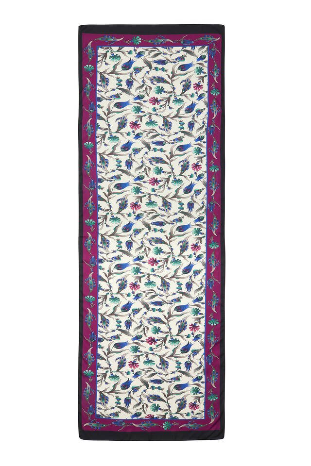 Black Purple Carnation Tulip Pattern Wide Silky Foulard
