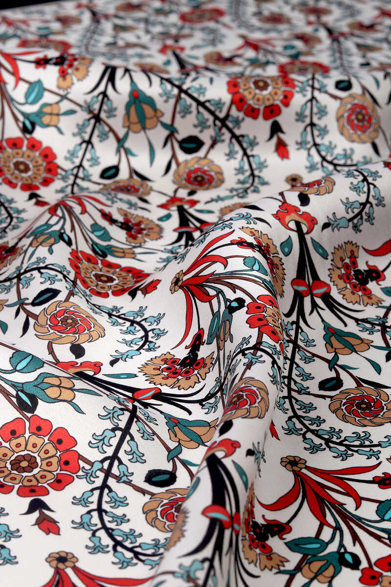 You, too, will feel the atmosphere of integrity in different beauty with the Black Side Pattern Sura Silk Square Scarf, reflected in the unique elegance of silk. Our product; It offers ease of use with its 100% silk content and dimensions of 90x90cm.