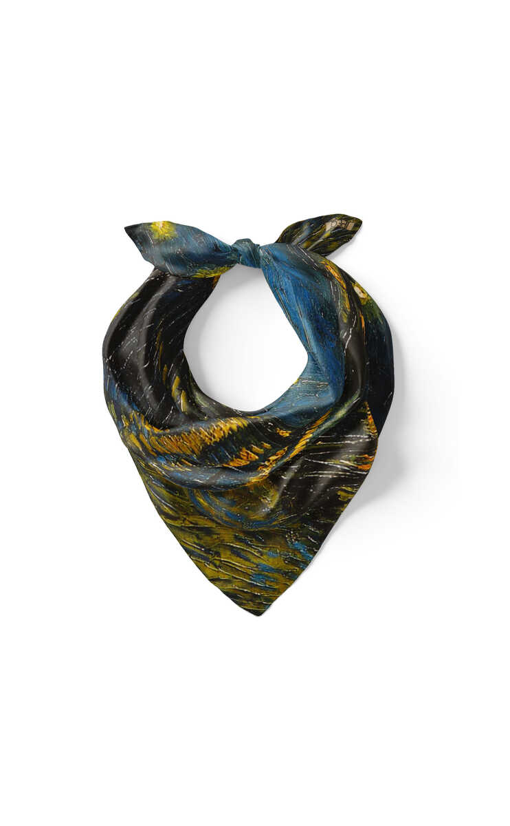 İpeğin eşsiz zarafetine yansıtılmış Siyah renkli Yıldızlı Geceler desenleri ile sizler de farklı güzellikteki bütünlüğün atmosferini hissedeceksiniz. Ürünümüz; %100 İpek içeriği ile 55x55cm boyutlarıyla kullanım rahatlığı sunuyor.