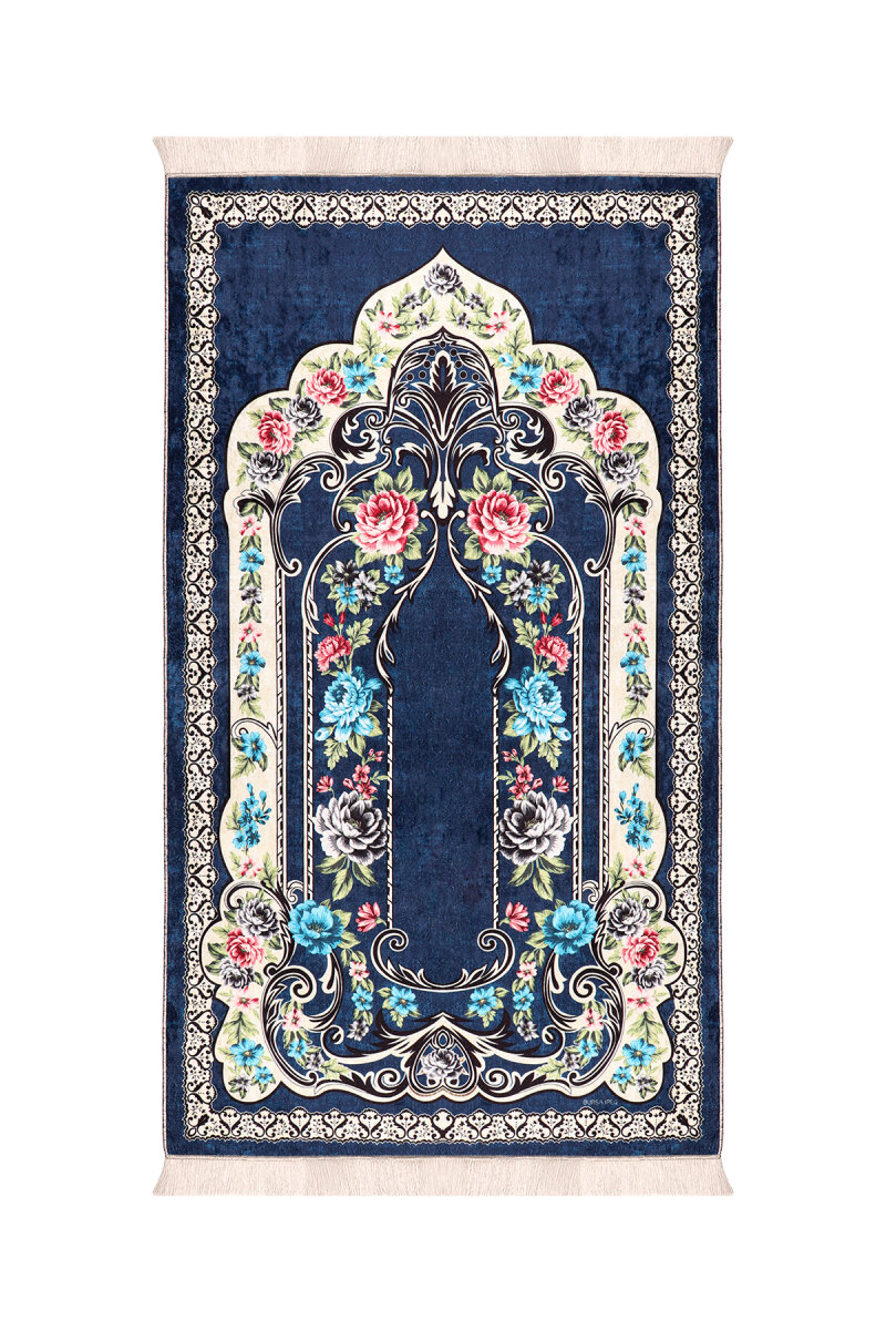 Navy Blue Sponge Velvet Prayer Rug