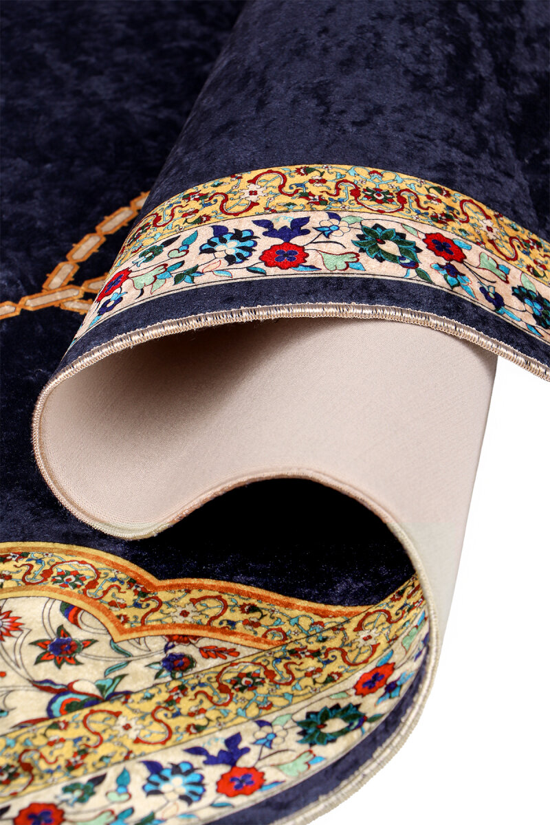 Navy Blue Sponge Velvet Prayer Rug