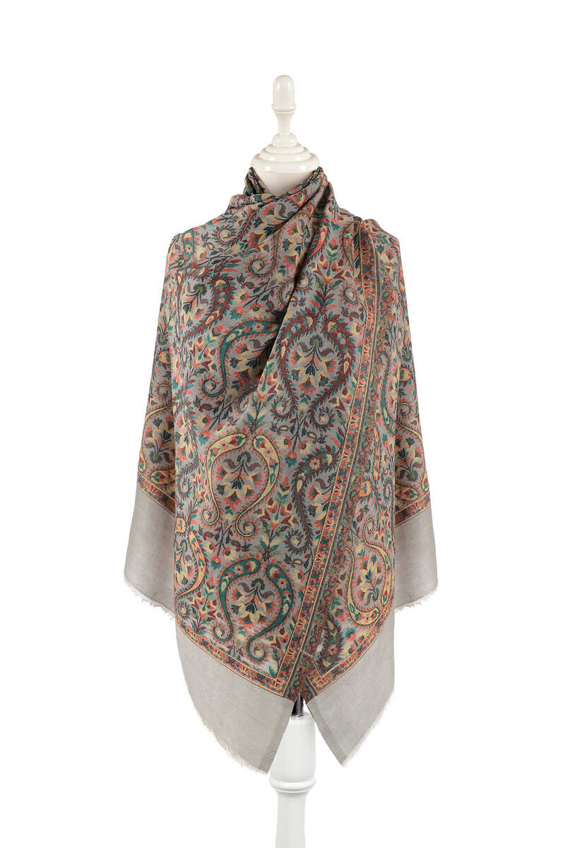 Our Stone Jacquard Patterned Wool Shawls, carefully produced to keep you warm on cool winter days, attract attention with their special embroidery and colors. Our product offers ease of use with its 100% wool content and dimensions of 75 x 210 cm.