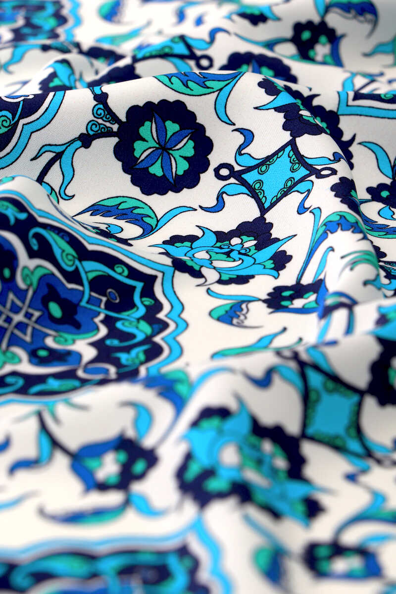 Klasik ve spor stilinize zamansız eşlik eden Su Yeşil Çini desen ipeksi mendil, modanın ışıltılı dünyasında size değer katıyor.Ürünümüz; ipeksi rayon içeriği, el kıvırma dikişi ve 55x55cm boyutlarıyla kullanım rahatlığı sunuyor.