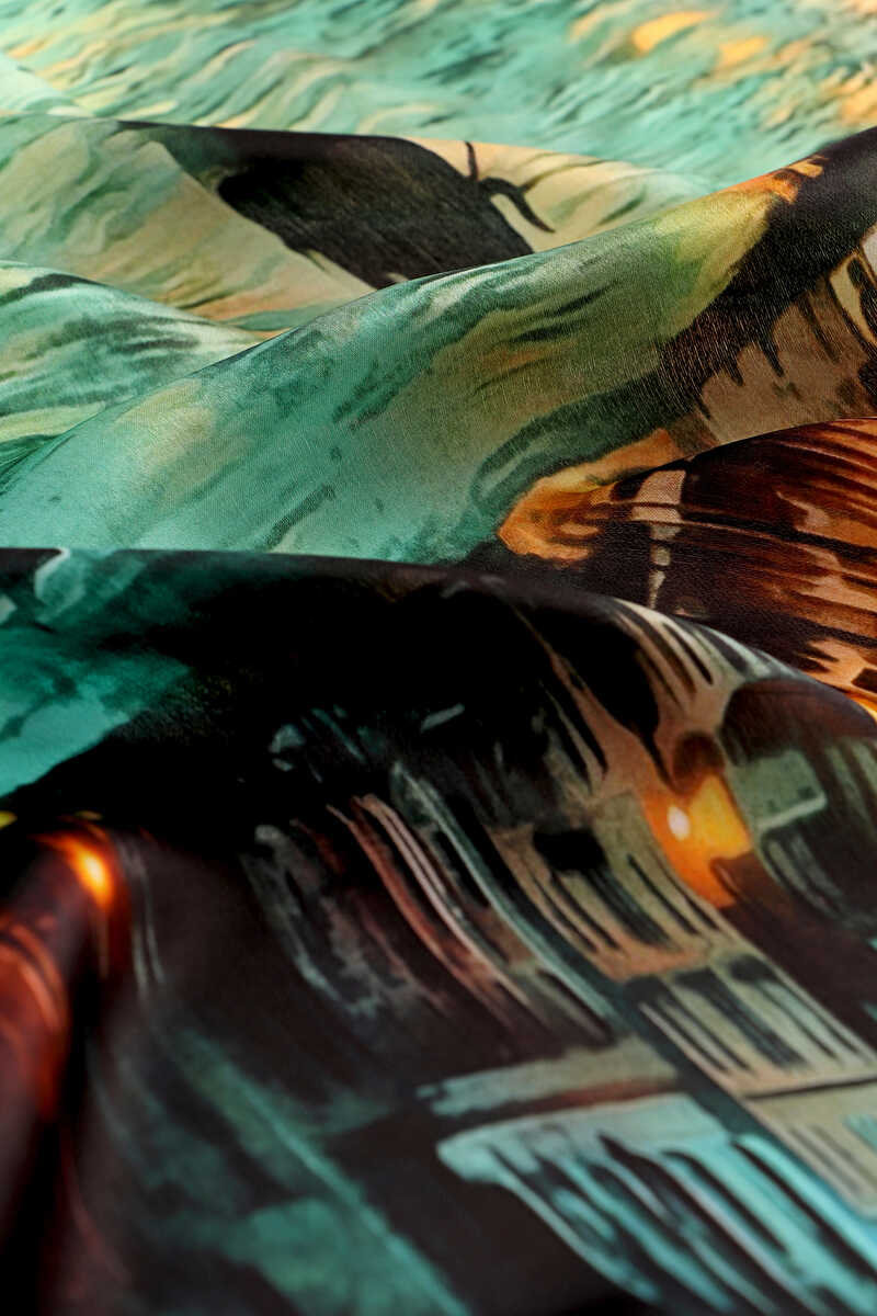 İpeğin eşsiz zarafetine yansıtılmış Su Yeşili renkli Venedik desenleri ile sizler de farklı güzellikteki bütünlüğün atmosferini hissedeceksiniz. Ürünümüz; %100 İpek içeriği ile 55x55cm boyutlarıyla kullanım rahatlığı sunuyor.