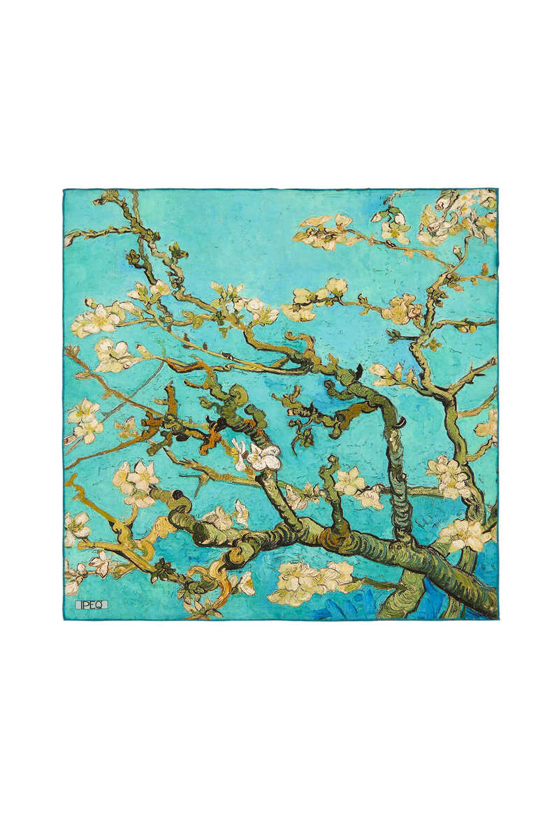 İpeğin eşsiz zarafetine yansıtılmış Su Yeşil renkli badem çiçeği desenleri ile sizler de farklı güzellikteki bütünlüğün atmosferini hissedeceksiniz. Ürünümüz; %100 İpek içeriği ile 55x55cm boyutlarıyla kullanım rahatlığı sunuyor.