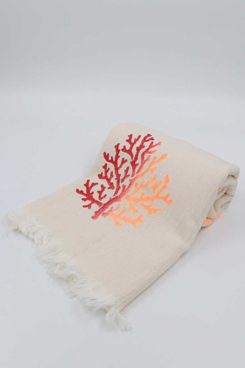 Geleneksel taş baskı ile desenlendirilmiş, göze hoş gelen mercan tasarımını sizlere sunan ve yumuşacık dokusu ile sizi saran kırmızı turuncu renkli mercan baskılı peştemal modelimiz 100x190 cm ebatında, %100 müslin içeriği ile hızlı su emer, çabuk kurur, az yer kaplar, kolay taşınır. Hamamda, plajda, havuzda ve ev dekorasyonunda kullanımınıza uygundur.