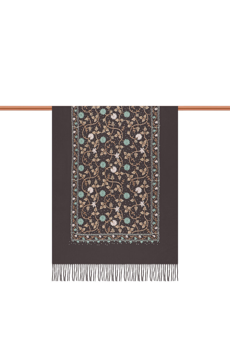 Smoked Stone Embroidered Winter Shawl