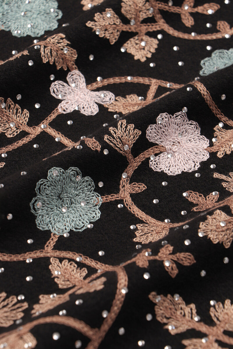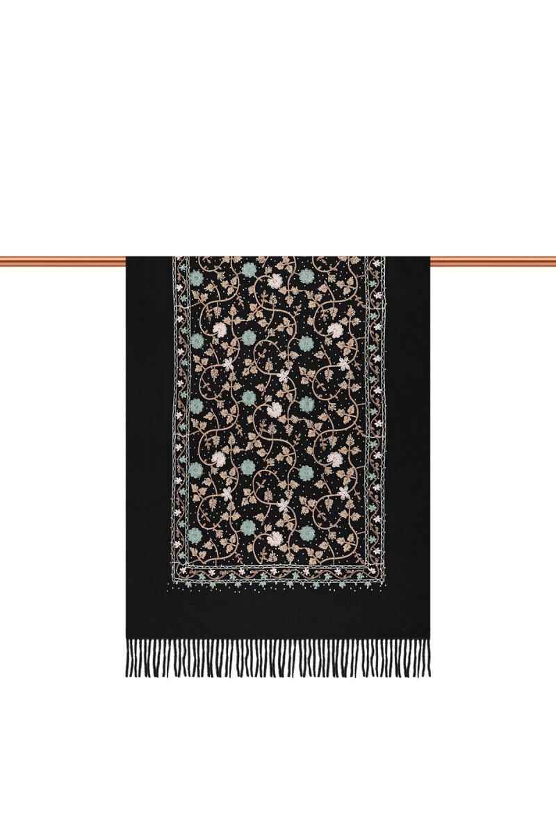 Siyah Taşlı Nakışlı Kışlık Şal