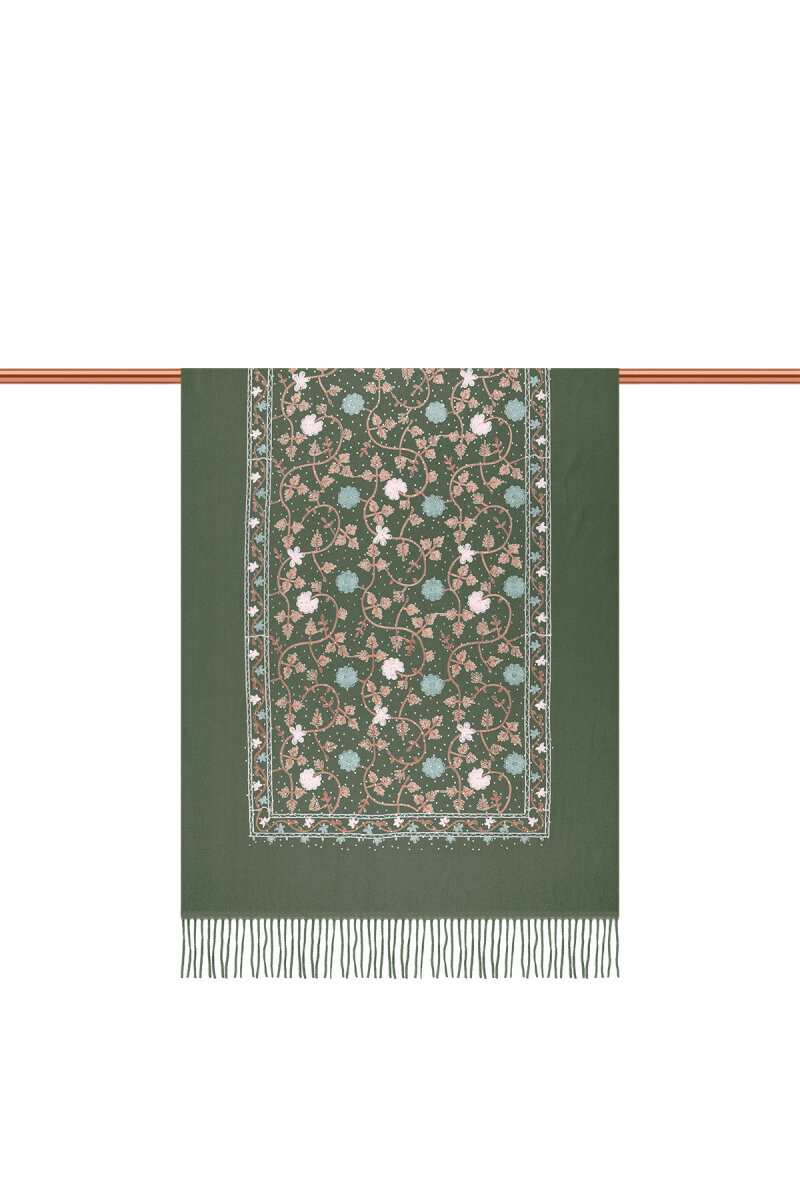 Yeşil Nakışlı Kışlık Şal