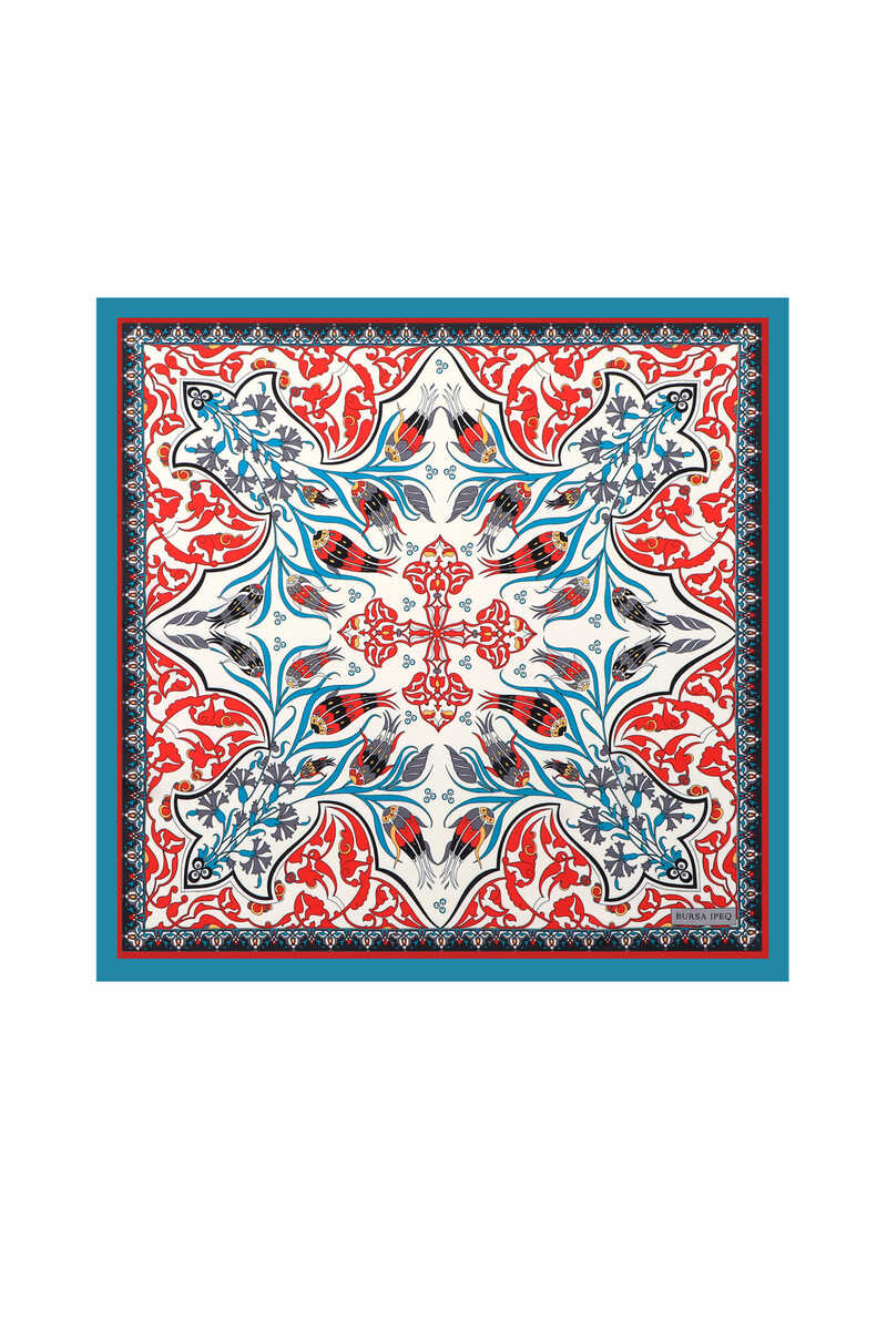 Turkuaz Lale Karanfil Desen İpeksi Mendil