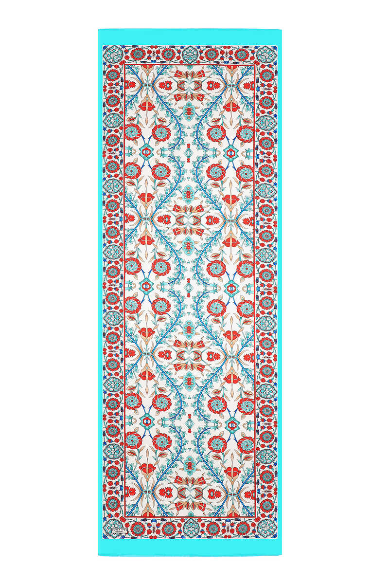Şıklığınıza şıklık katarken, en ciddi iş toplantısından en zarif sanat galerisine kadar stilinizi tamamlayacak özel bir model. Göz alıcı desenlere sahip Turkuaz Ekru renkli Selçuk Desen İpek Fular modelimiz, %100 ipek içeriği, 55x160cm boyutlarıyla kullanım kolaylığı sunuyor.