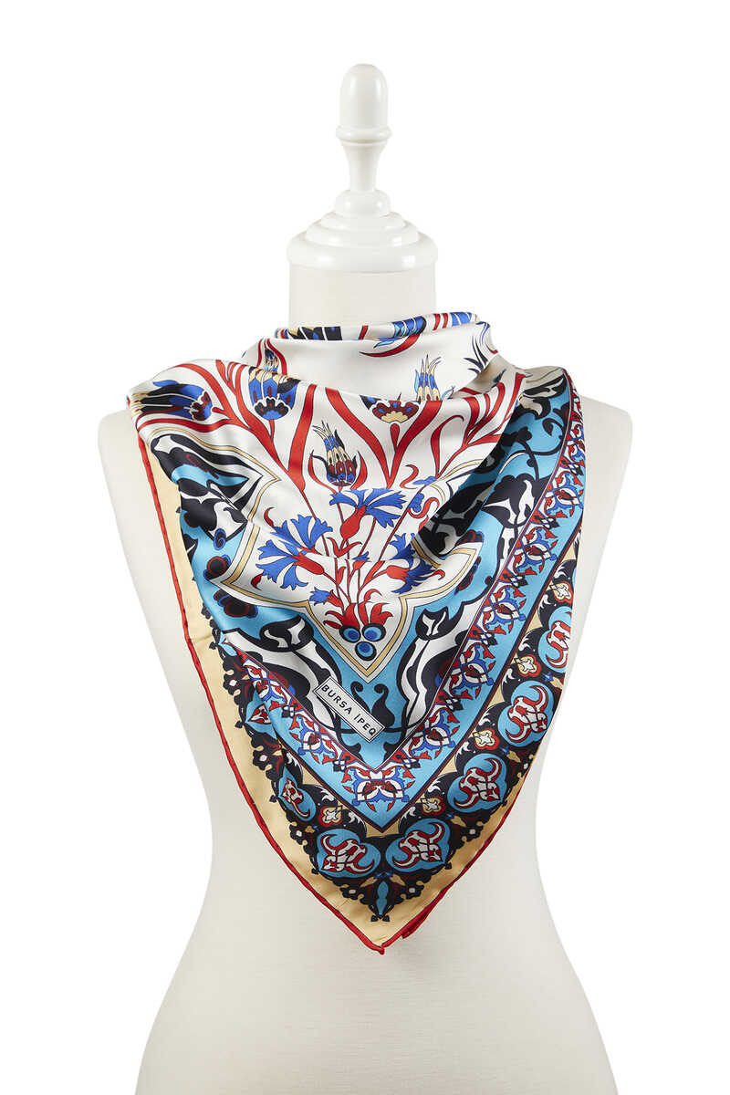 Turkuaz Hardal Çintemani Karanfil desenlerinin ipeksi kumaş dokusu ile parlak ve canlı renklerle bir araya geldiği eğlenceli ve aynı zamanda klasik bir seçim… Çiçeklerin ipeksi dokuya büründüğü halleri ile hayata enerji katın! Ürünümüz: %100 ipeksi rayon kumaşı, 90x90 cm boyutlarıyla kullanım kolaylığı sunuyor.
