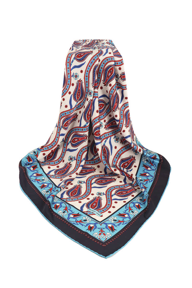 Turquoise Ivy A fun and classic choice where tulip patterns come together with silky fabric texture and bright and vibrant colors… Add energy to life with the silky texture of flowers! Our product: 100% silky rayon fabric offers ease of use with its dimensions of 90x90 cm.