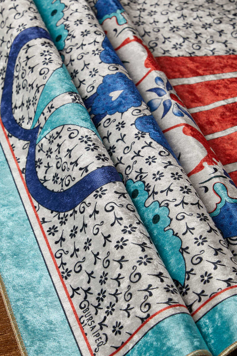 With its silky texture and eye-catching colors, our Turkish motif and tile patterned prayer rug models offer a decorative look, while the velvet texture is specially designed for your comfortable use with 65x115cm dimensions.